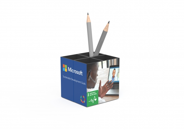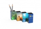 Garantirana kvaliteta Presenetljiva kockasta posoda za pisala, ki se ob razstavljanju spremeni v panoramsko oglasno ploščo in nato spet v kocko!